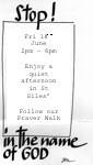 But in the midst of the excitement of all that the Festival has to offer, you might also appreciate the chance to stop for a while and experience a quieter moment or two. If so, why not come along to the Quiet Afternoon at St Giles’ on Friday 18th June? Visit between 2pm and 6pm. Stay for as long or as short a time as you want. Take the opportunity to follow the Prayer Walk through the Churchyard. You’ll emerge refreshed and ready for the excitement of Gala Day!