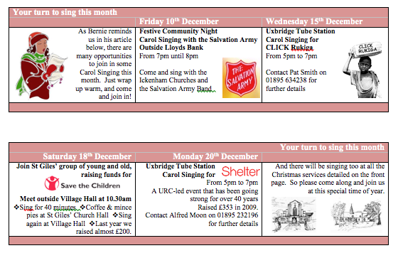 The two other churches in the parishes – Ickenham URC and Harefield Baptist Church – contributed to early discussions, and both hope to become more involved once activities have become established. In the meantime, the project would appreciate the prayers and support of all four congregations and the community in general.