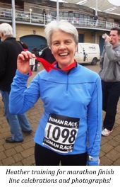 Heather has been running occasionally for around 25 years, but it was five years ago when she stopped work that she found time to take longer distances more seriously. She now tries to get in several runs a week (more recently, in training for this event.) No, she doesn’t get bored and says it gives her time to think and count the smiles of people she passes. “It doesn’t cost much to run”, she said, “all you really need to have is a decent pair of shoes. Fortunately, I’ve suffered no serious injuries so far and I want to get at least one London Marathon in while I’m fit and able.”