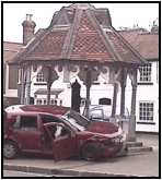 A lunchtime crash on 10th September has left the landmark Ickenham Pump in need of repairs. A red Volkswagen crashed into the octagonal timber-framed portico of the historic structure, damaging the balustrade and two of the supporting columns. Fortunately the driver escaped without injury.