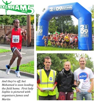 The winning man, who appeared to ‘fly’ round the course, lapping a lot of the field, was Mohamed Mohamed-Hassan, in the astonishing time of 24:44. Mohamed runs for Thames Valley Harriers, and last year represented his native Somalia in the 1500 metres at the London Olympics. The first lady finisher was Sophie Delderfield of Vale of Aylesbury AC in 30:22.