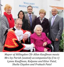 The Mayor and Mayoress, Mrs Lynne Kauffman, were introduced to the practice’s oldest patient, Mrs Ivy Parish who is approaching her 105th birthday! Ivy lives in Ickenham with her daughter Sheila Claydon.