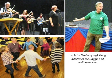 Revellers enjoyed a tasty three-course haggis meal, prepared by Chefs Sharon O’Dell and Lee Lewis, the haggis being piped in by a traditionally dressed bagpiper. Doug flavoured the evening by reciting Rabbie’s poems including the traditional ‘Address to a Haggis’.